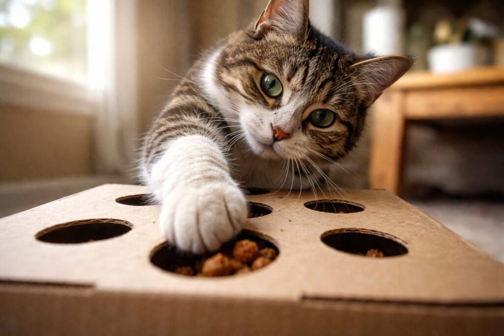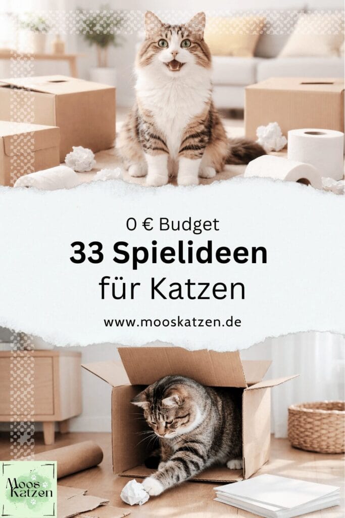 Hier kommen 33 Spielideen, die 0 € kosten, sofort funktionieren und selbst gemütliche Wohnungskatzen zuverlässig müde machen.