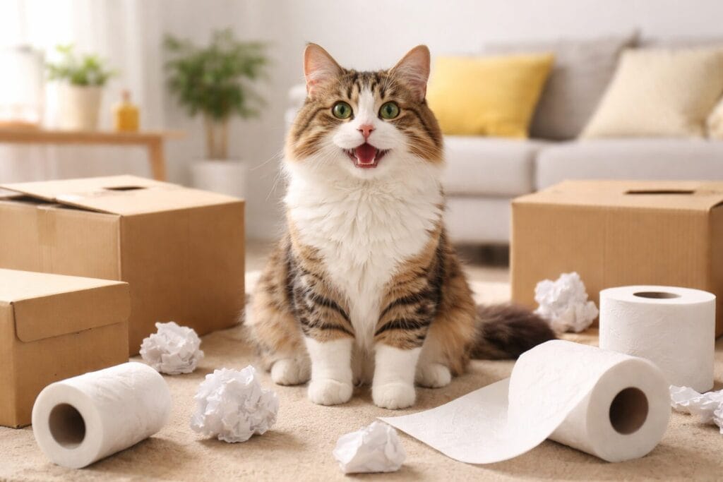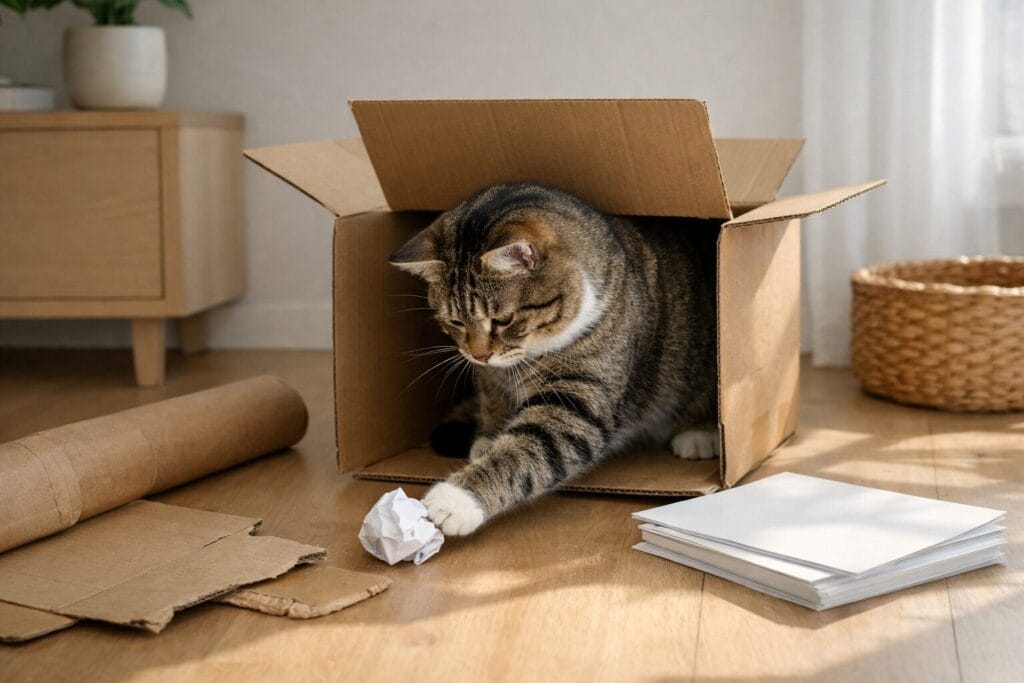Versteh mich nicht falsch: Ein ordentlicher Kratzbaum ist nett. Aber wenn mir langweilig ist, brauche ich kein High-Tech. Ich brauche Jagd, Rätsel, Bewegung und Beute. Und die besten Abenteuer lauern oft im Recycling-Korb, in der Küchenschublade oder auf dem Wäschestapel.