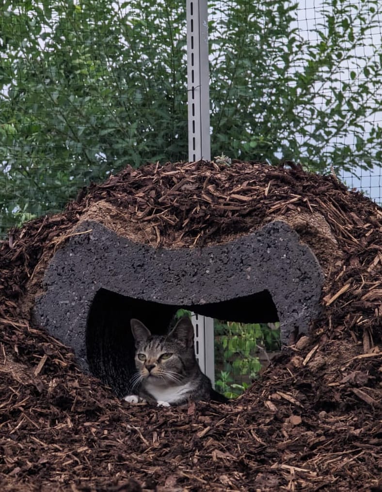- Aussicht und Ästhetik: Für die Optik haben meine Menschen kleine Hügel aufgeschüttet und bepflanzt, das macht das Revier spannender. Außerdem haben sie einen Kletterturm mit mehreren Ebenen eingebaut – perfekt zum Chillen und Beobachten.